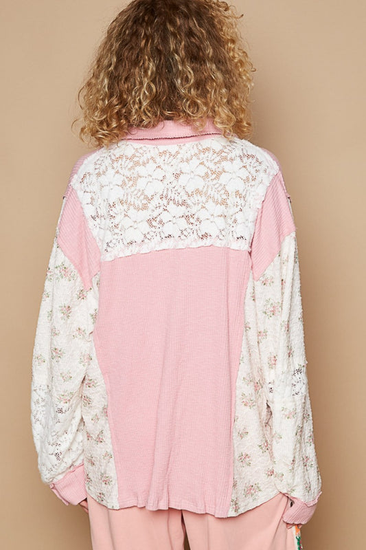 POL Floral Contrast Front Lace Pocket Shirt